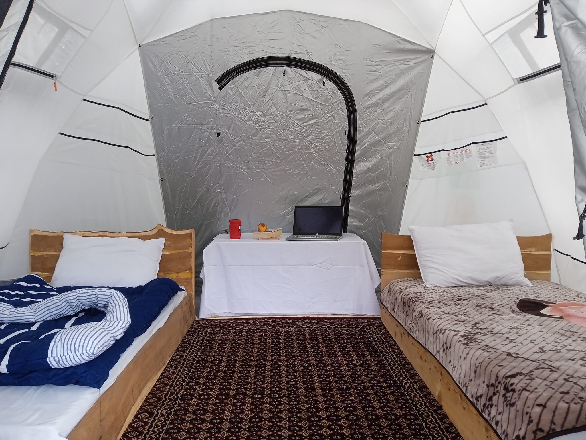- Sleeping Arrangements: Inside, you will find two premium quality beds, meticulously selected to ensure warmth and comfort through the chilly mountain nights. The beds are crafted with ultra-soft materials, guaranteeing a restful sleep after a day of adventure.